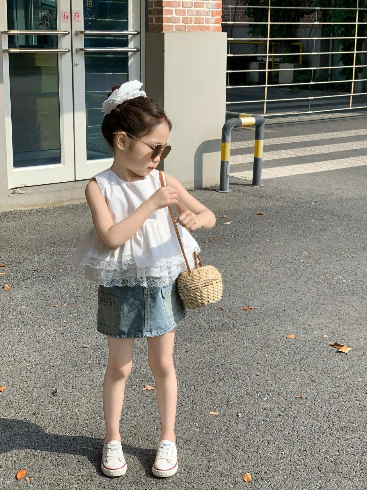 - [수입]레이스민소매+데님스컷