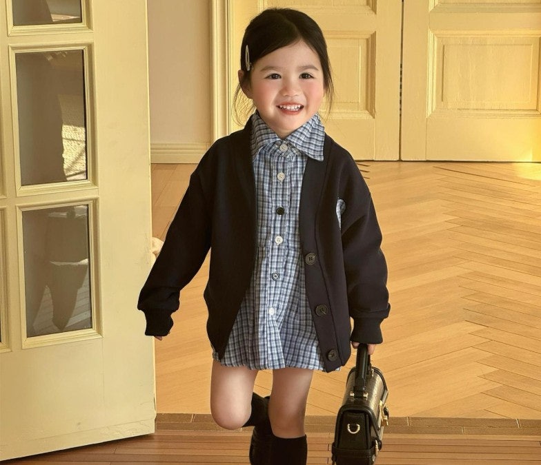 - [수입]체크블루원피스가디건셋