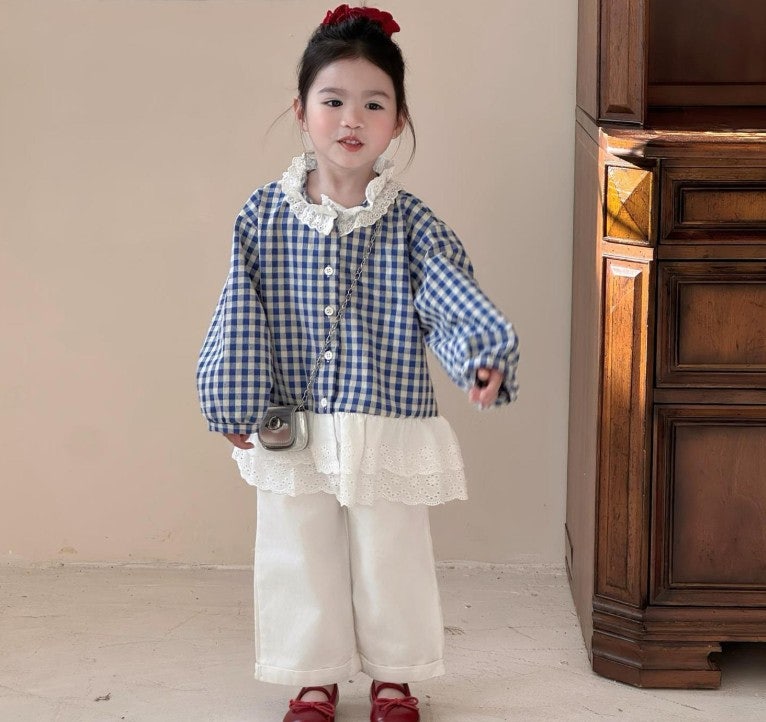 - [수입]블루체크롤업팬츠셋