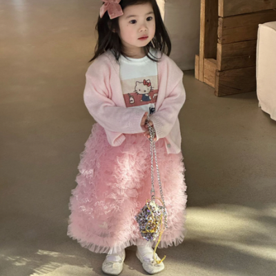 - [빠른수입] 핑크가디건+롱치마셋