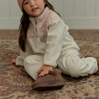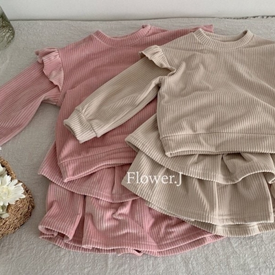 - [빠른수입] 기모) 핑크바지 플라워자켓 세트