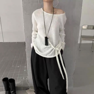 on.[NT673]라운드넥허리끈니트