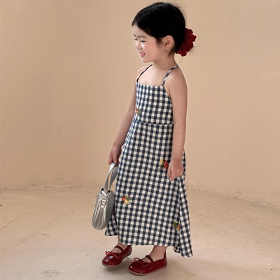 비다이어리.플라워자수블루체크원피스