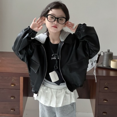 [빠른수입] 그레이후드블랙가죽자켓